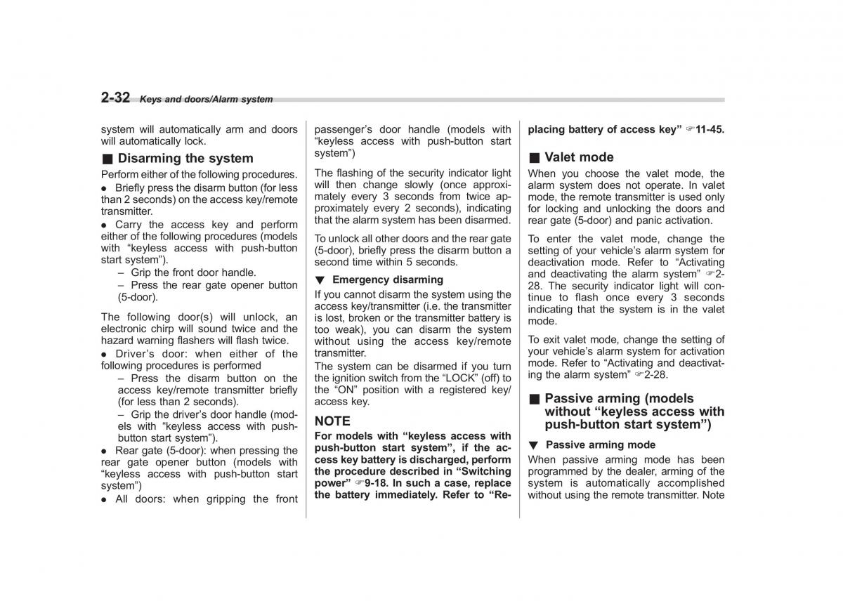 &Disarming the system system”) &Valet mode