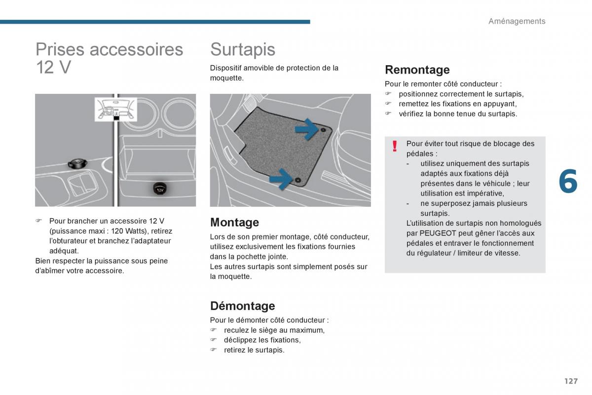 Pour brancher un accessoire 12 V M ontage L’utilisation de surtapis non homologués