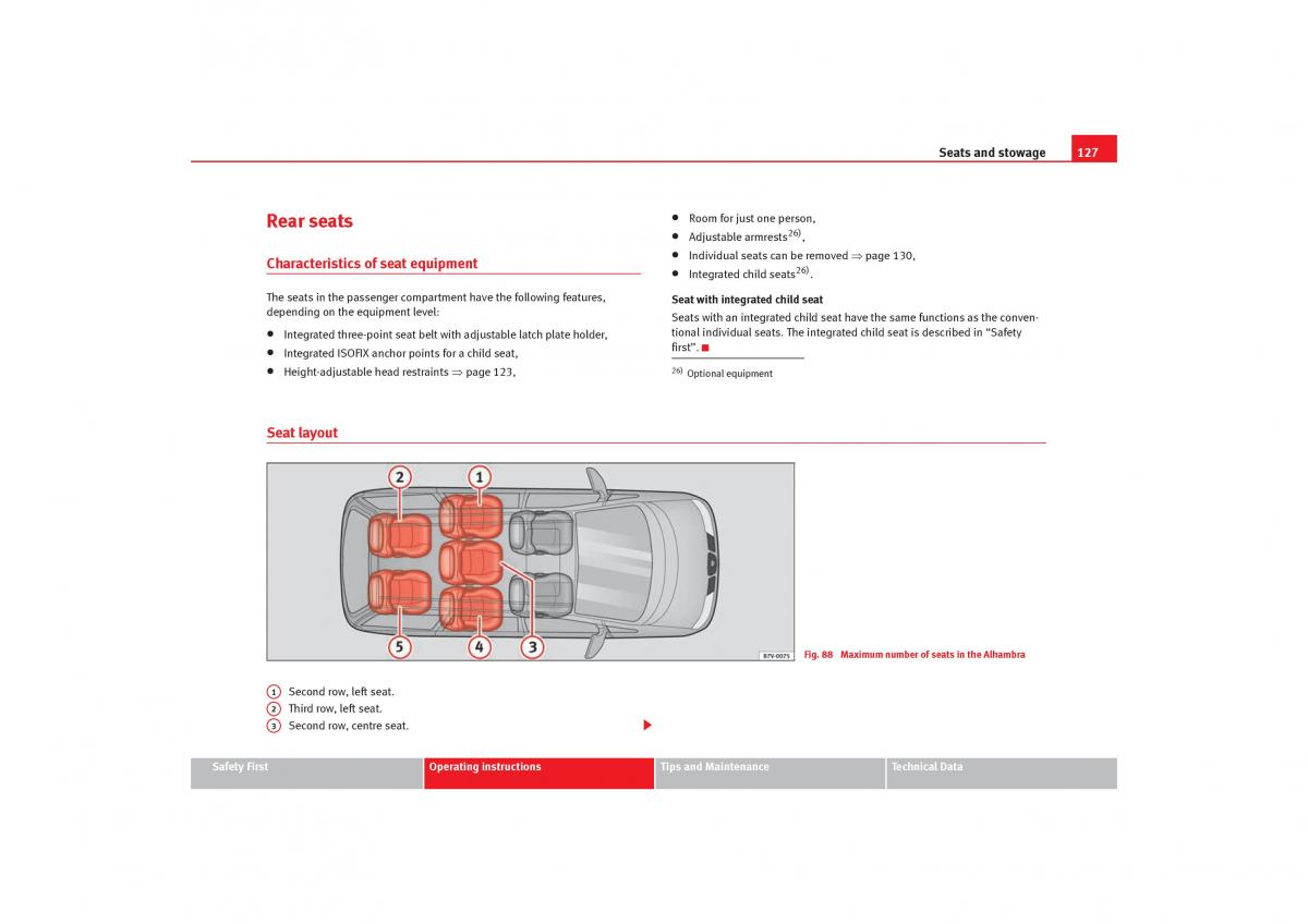 Characteristics of seat equipment • Individual seats can be removed ⇒ page 130,