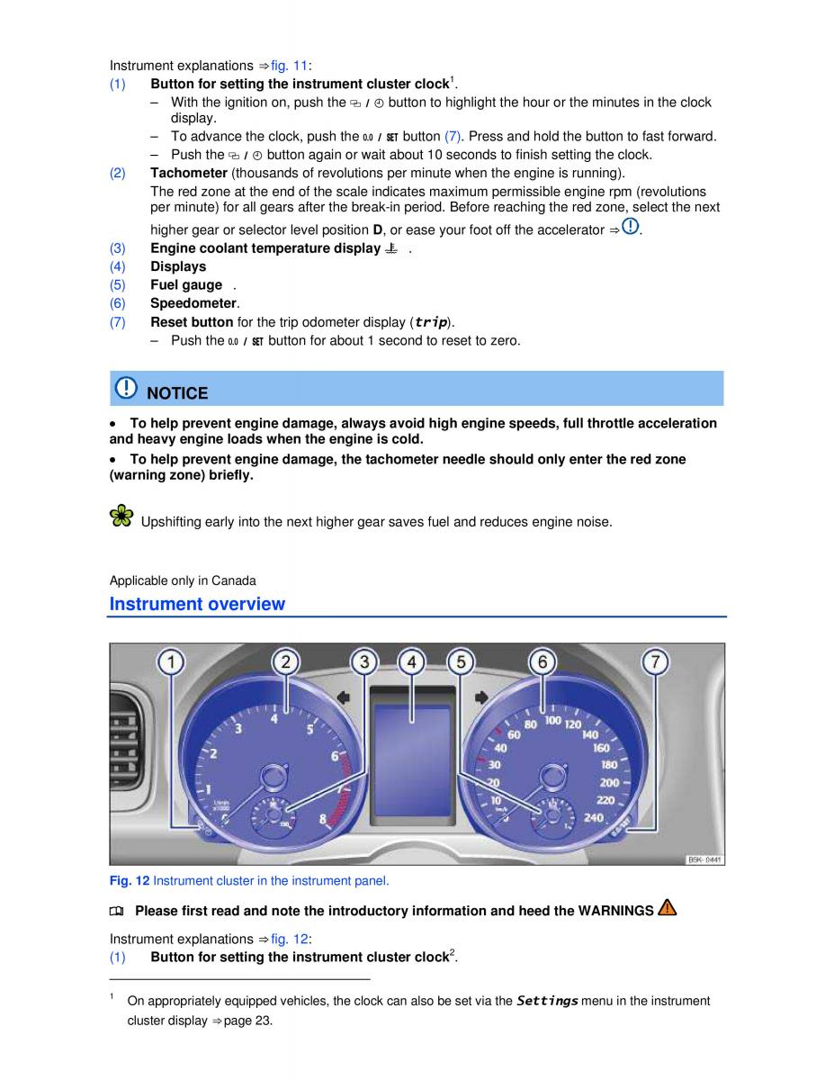 1 On appropriately equipped vehicles, the clock can also be set via theSe ttings menu in the instrument