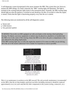 Restraint System (SRS). The Volvo SRS consists of airbags (2) and knee bolsters (5) on both the driver's