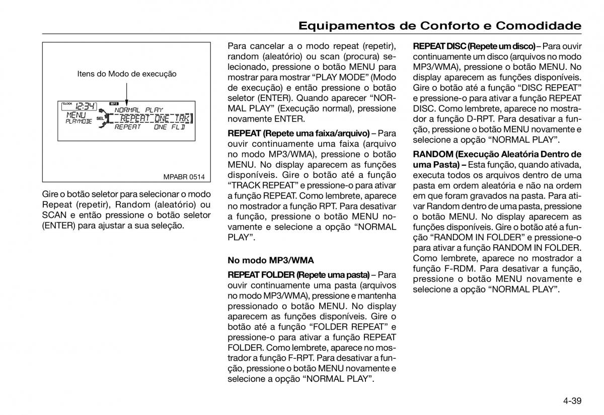ouvir continuamente uma faixa (arquivo selecione a opção “NORMAL PLAY”.