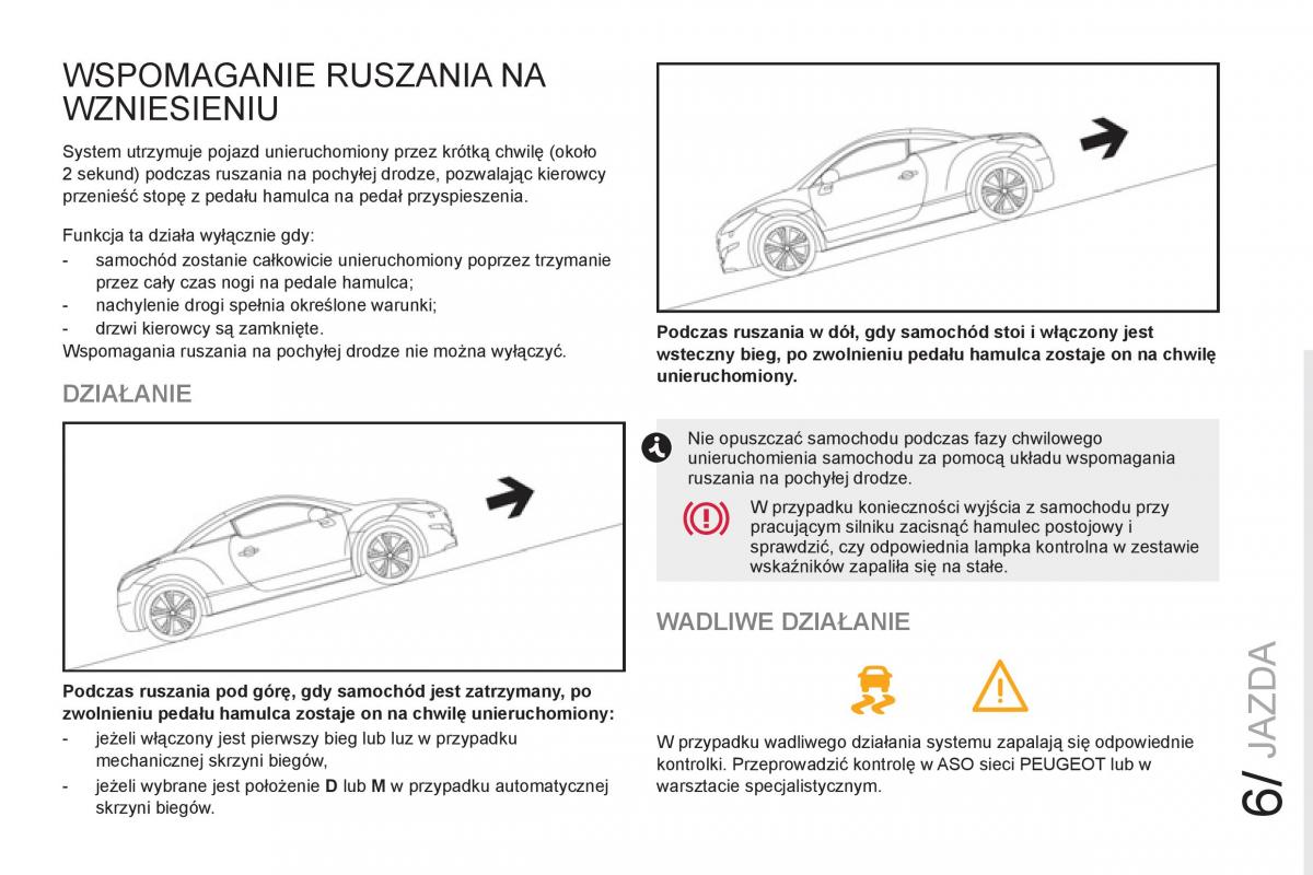 Wspomagania ruszania na pochyłej drodze nie moĪna wyłączyć. wsteczny bieg, po zwolnieniu pedału hamulca zostaje on na chwilĊ