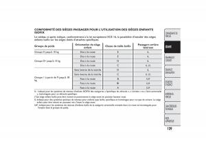 Le tableau ci-après indique, conformément à la loi européenne ECE 16, la possibilité d'installer des siègesVÉHICULE