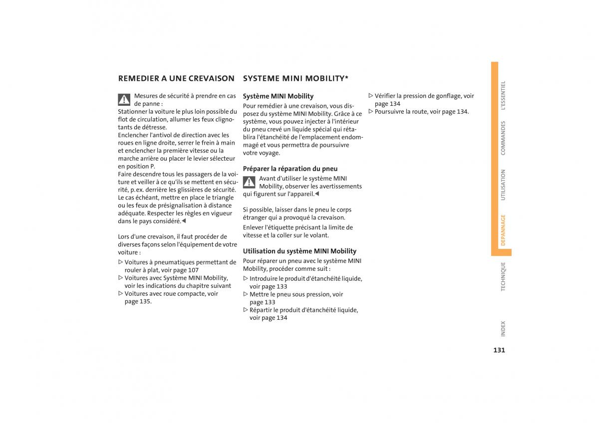de panne: Pour remédier à une crevaison, vous dis-page 134 L'ESSENTIEL