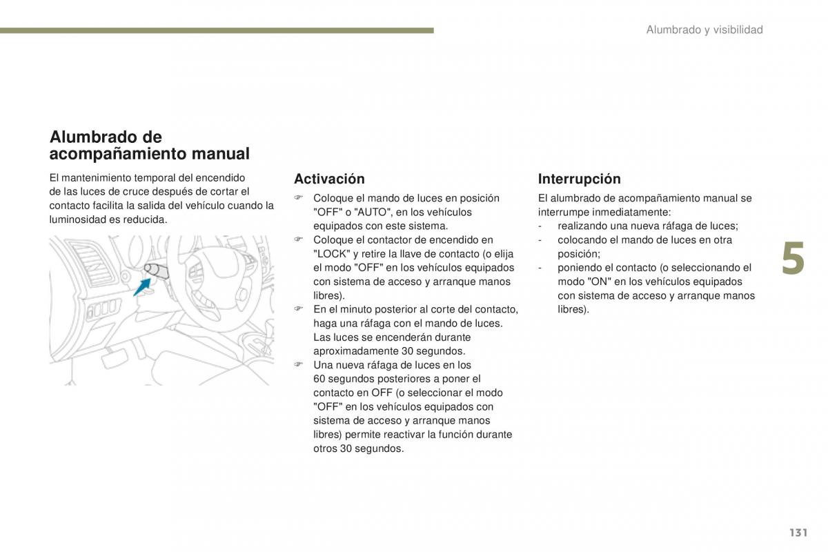 de las luces de cruce después de cortar el F Coloque el mando de luces en posición El alumbrado de acompañamiento manual se
