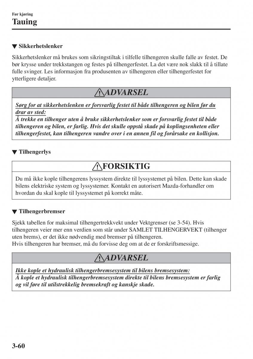 bilens elektriske system og lyssystemer. Kontakt en autorisert Mazda-forhandler om
