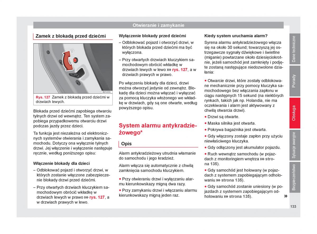 Zamek z blokadą przed dziećmiWyłączenie blokady przed dziećmiKiedy system uruchamia alarm?
