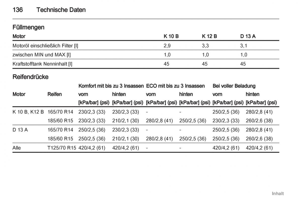 K 10 B, K12 B 165/70 R14230/2,3 (33)230/2,3 (33)-- 250/2,5 (36)280/2,8 (41)