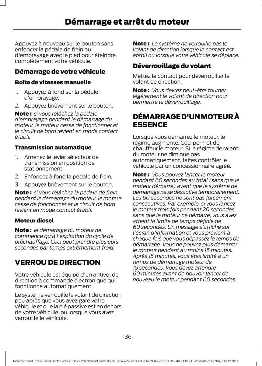 owners manual Ford Mondeo Hybrid - year of production: 2014 - Ford Mondeo hybrid MKV MK5 manuel du proprietaire FR