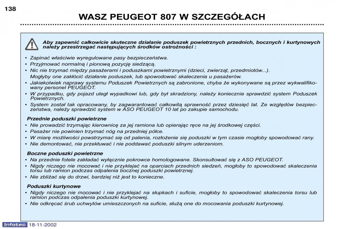 owners manual Peugeot 807 - year of production: 2002, 2003, 2004, 2005, 2006, 2007, 2008, 2009, 2010, 2011, 2012, 2013, 2014 - Peugeot 807 instrukcja obslugi PL