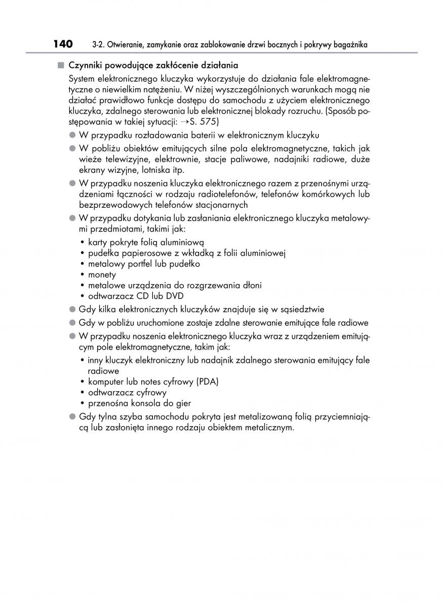 140 3-2. Otwieranie, zamykanie oraz zablokowanie drzwi bocznych i pokrywy baga˝nika