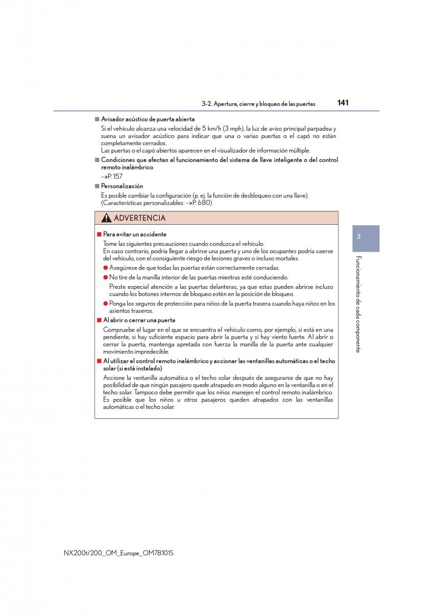 3-2. Apertura, cierre y bloqueo de las puertas141