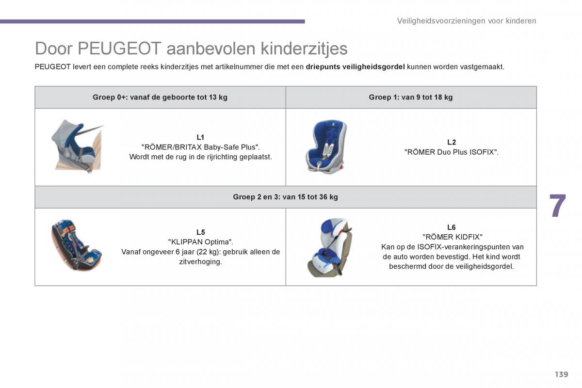 PEUGEOT levert een complete reeks kinderzitjes met artikelnummer die met een driepunts veiligheidsgordel kunnen worden vastgemaakt.