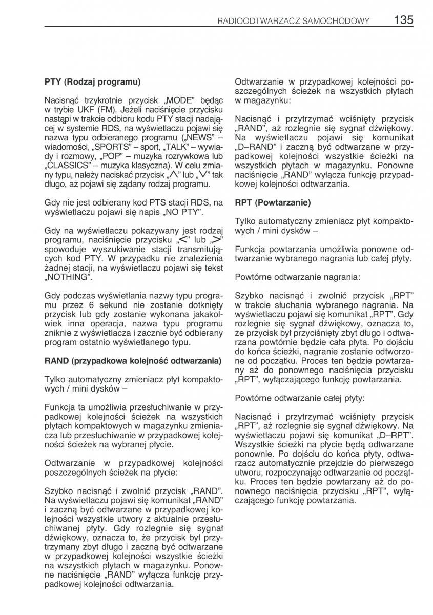 cej w systemie RDS, na wyÊwietlaczu pojawi si´„RAND”, a˝ rozlegnie si´ sygna∏ dêwi´kowy.