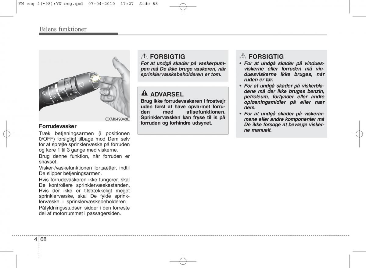 pen må De ikke bruge vaskeren, nårviskerne eller forruden må vin -
