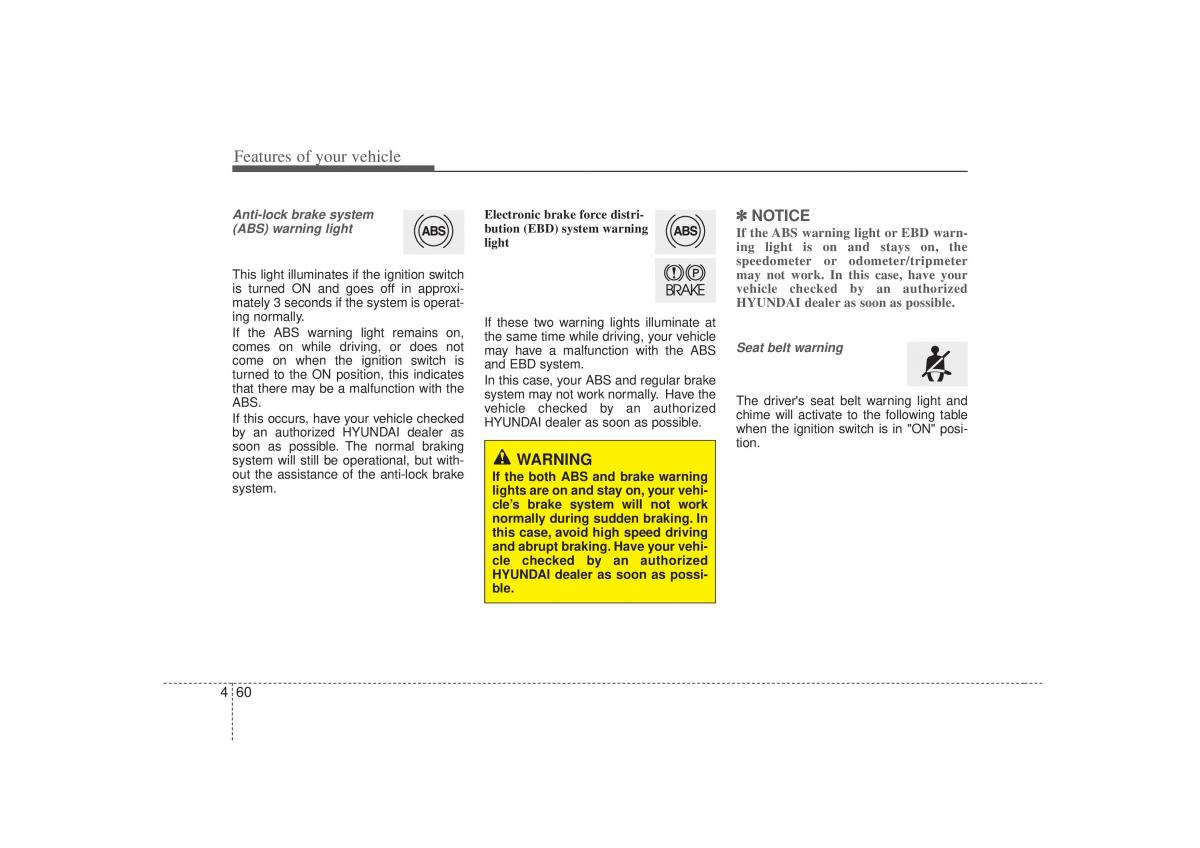 If this occurs, have your vehicle checked HYUNDAI dealer as soon as possible. chime will activate to the following table