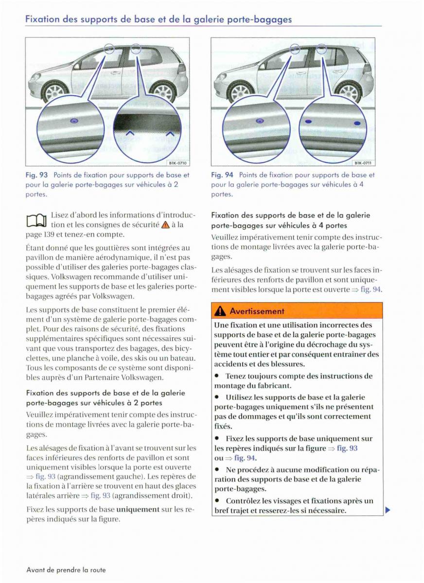 quement les supports de base et les galeries porte-ment visibles lorsque la porte est ouverte => fig. 94.