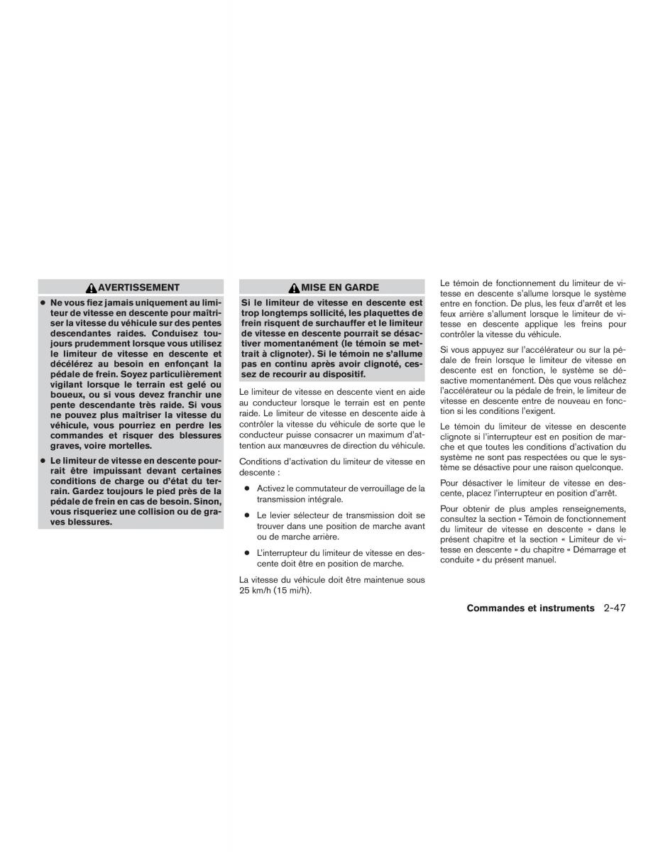descendantes raides. Conduisez tou-devitesse en descente pourrait se désac-contrôler la vitesse du véhicule.