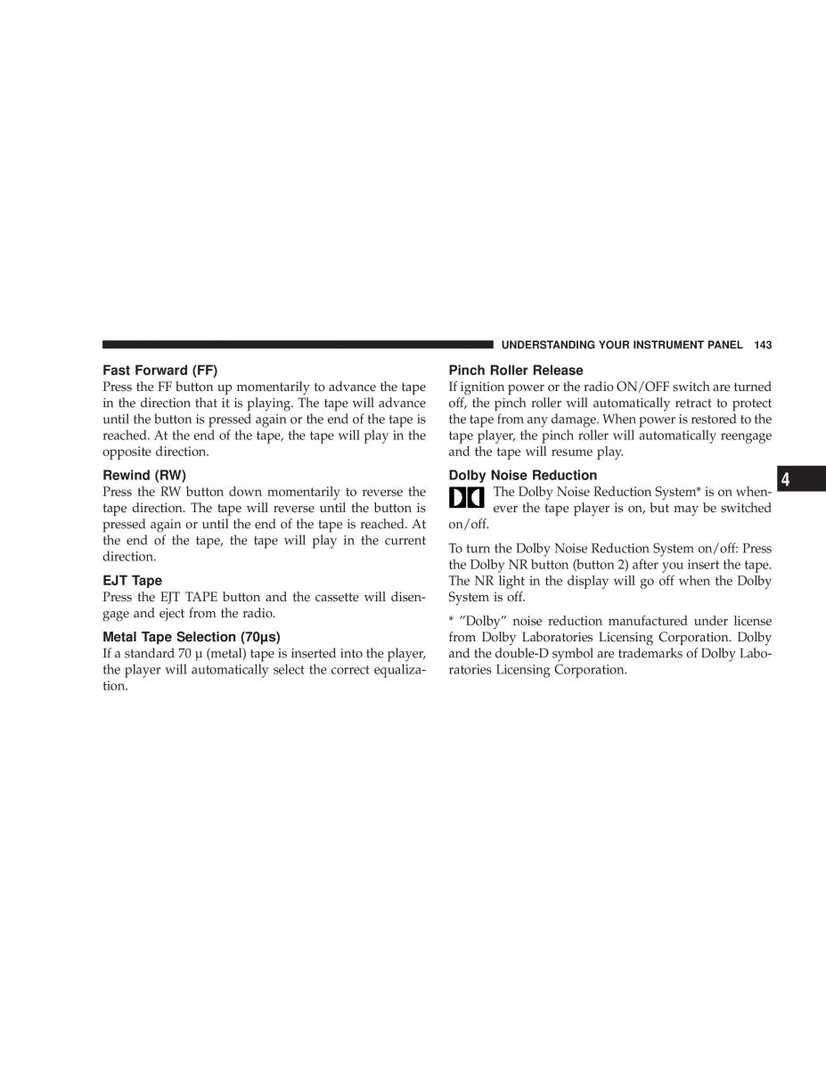 gage and eject from the radio. * ”Dolby” noise reduction manufactured under license