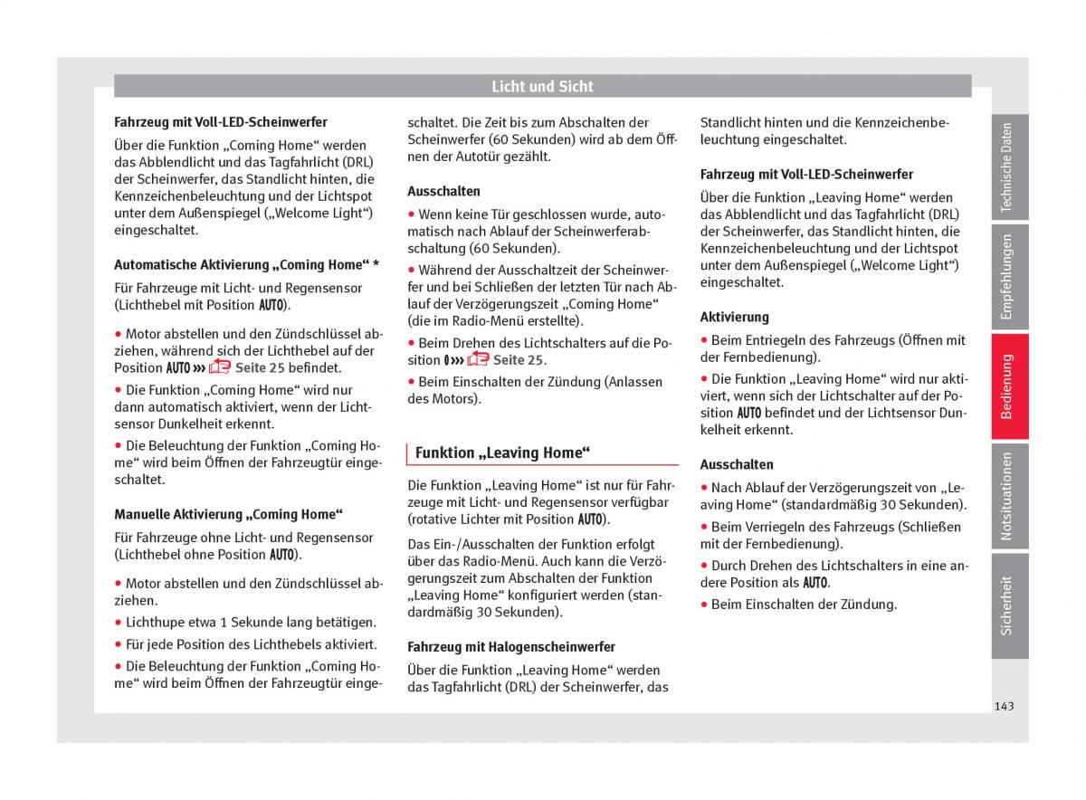 Kennzeichenbeleuchtung und der Lichtspot Über die Funktion „Leaving Home“ werden