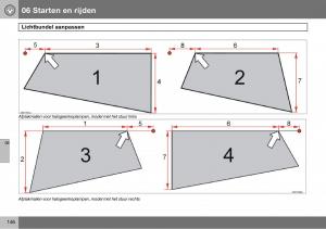 Positie van afplaktape op de halogeenkoplampen (1 en 6 op modellen met het stuur links/8 en 9 op modellen met het stuur rechts)