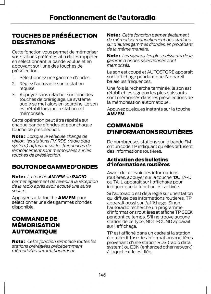 Note : La touche AM/FM ou RADIOAvant de recevoir des informations