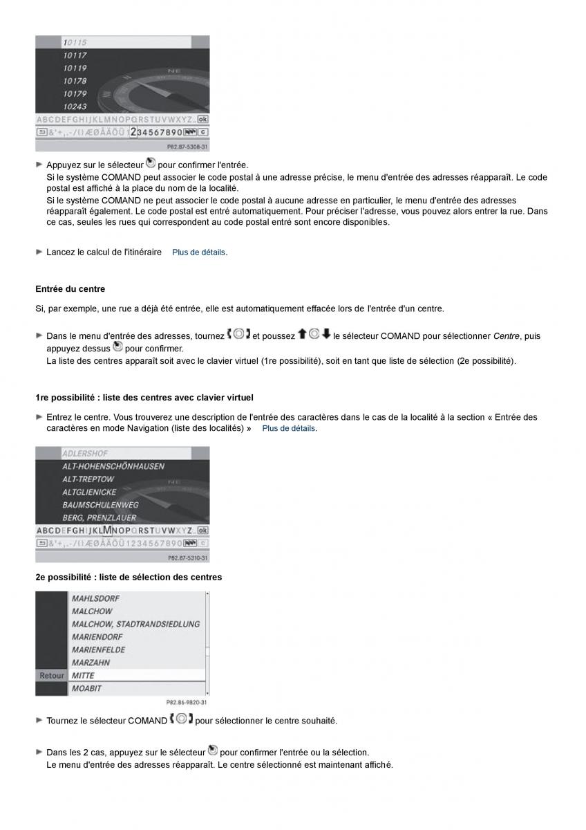 Si le système COMAND peut associer le code postal à une adresse précise, le menu d'entrée des adresses réapparaît. Le code
