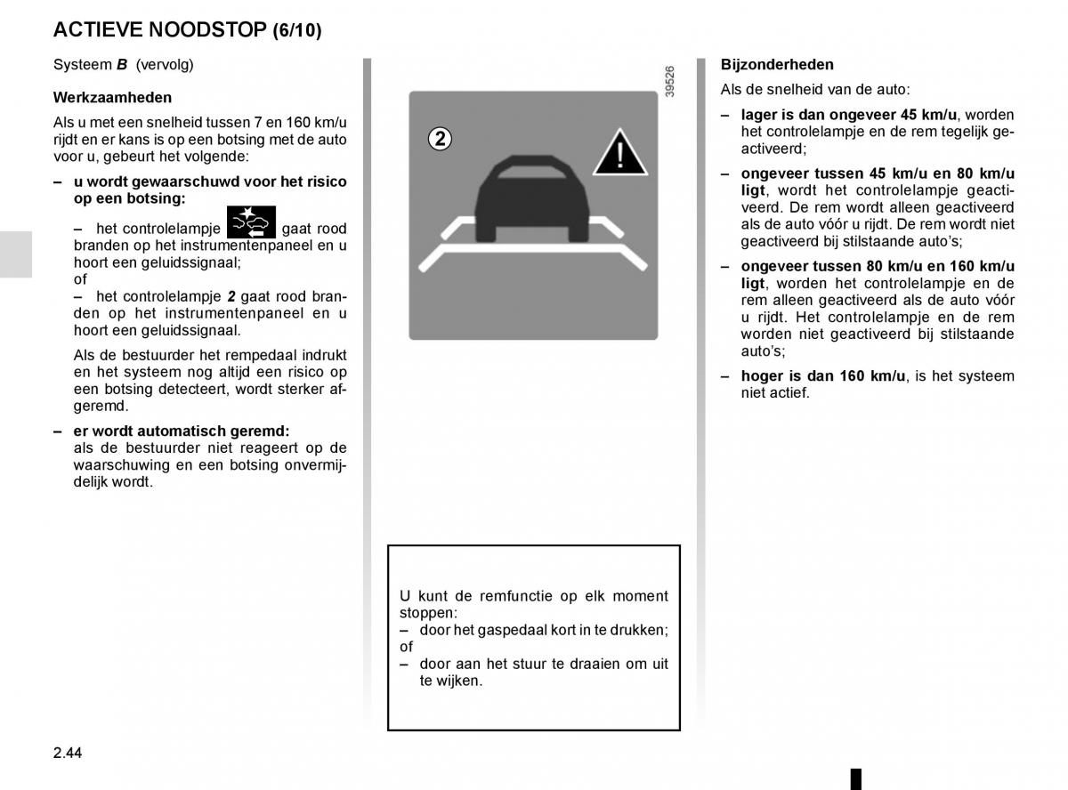 – het controlelampje 2 gaat rood bran- rem alleen geactiveerd als de auto vóór