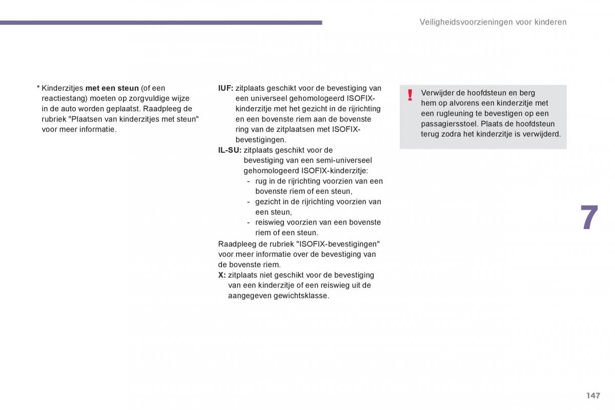rubriek "Plaatsen van kinderzitjes met steun" en een bovenste riem aan de bovenste passagiersstoel. Plaats de hoofdsteun