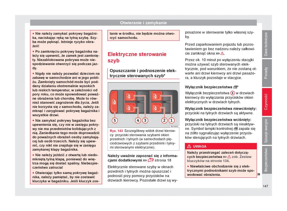 trycznymi podnoĞnikami szyb moĪe spo-Bezpieczeństwo