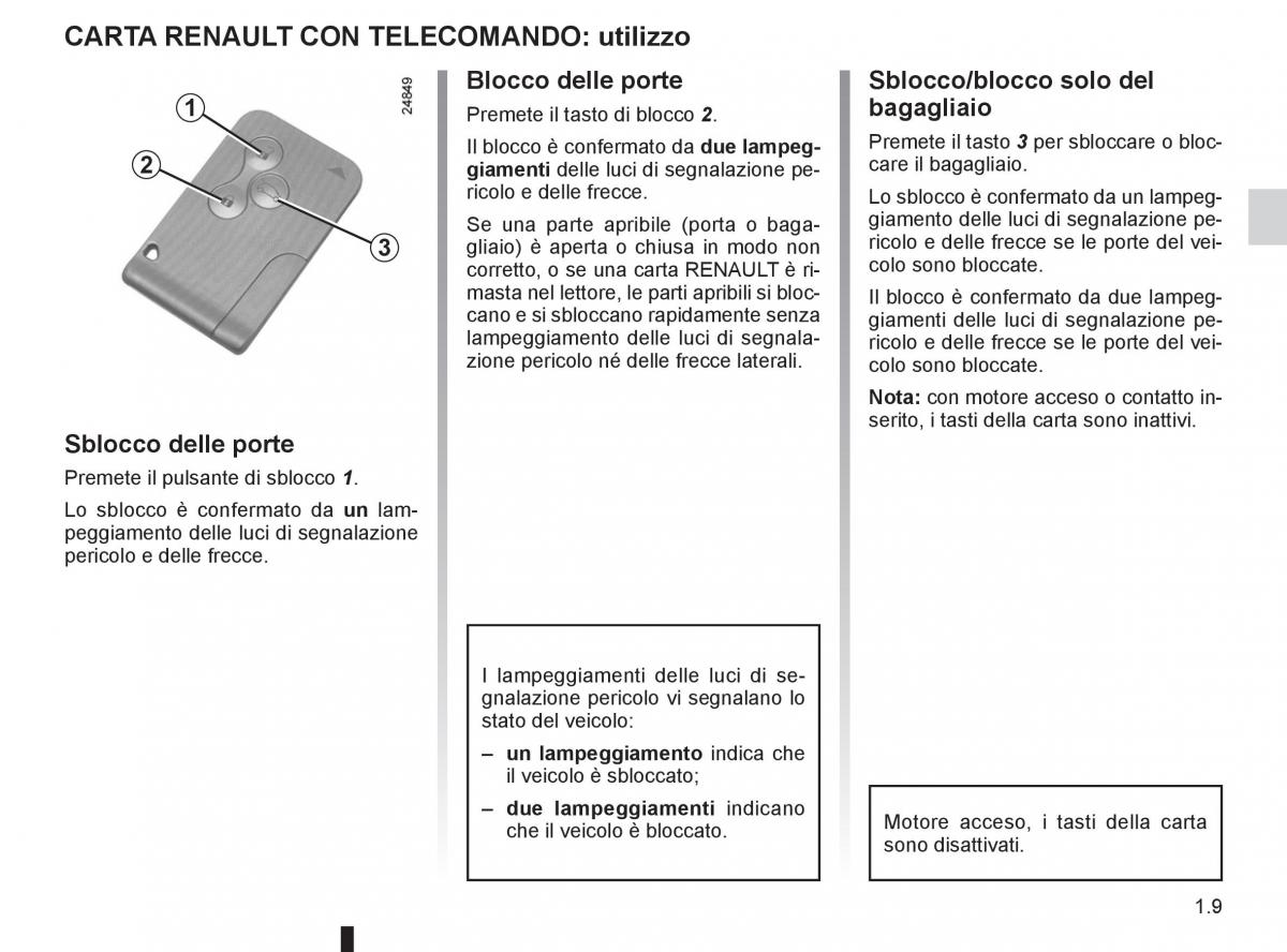 CARTA RENAULT CON TELECOMANDO: utilizzo