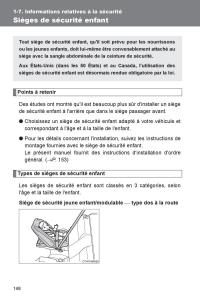 Positions recommandée d'installation des sièges de sécurité enfant.