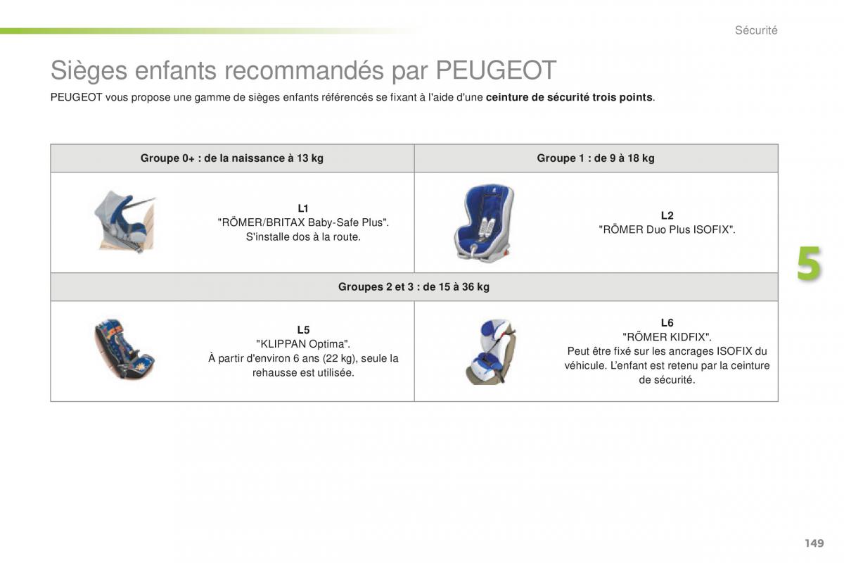 PEUGEOT vous propose une gamme de sièges enfants référencés se fixant à l'aide d'une ceinture de sécurité trois points.