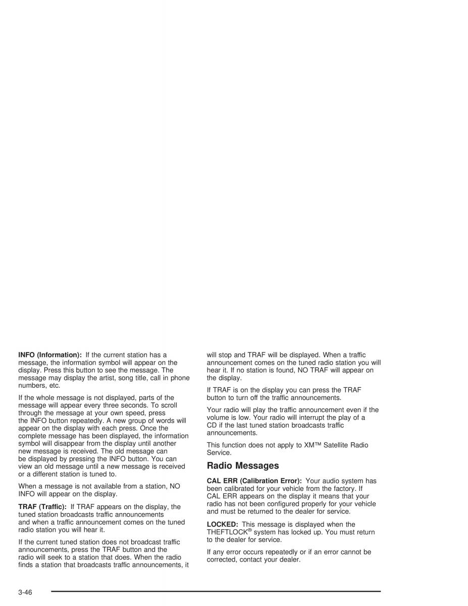 and when a traffic announcement comes on the tuned LOCKED: This message is displayed when the