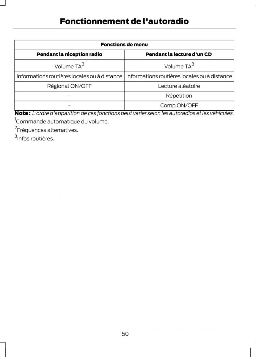 Note : L'ordre d'apparition de ces fonctions peut varier selon les autoradios et les véhicules.