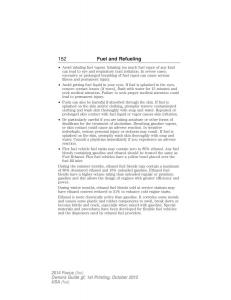 • Flex fuel vehicle fuel tanks may contain zero to 85% ethanol. Any fuel