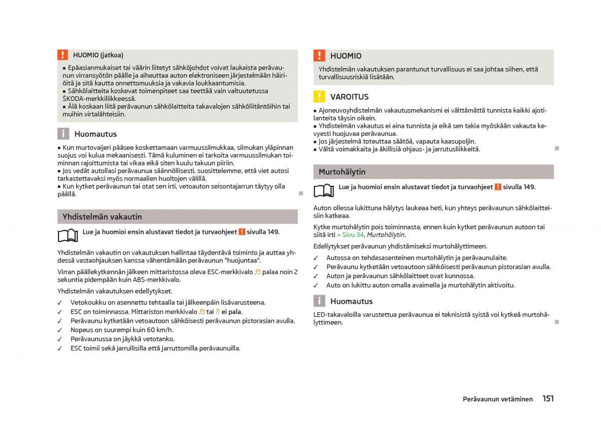 Auton ollessa lukittuna hälytys laukeaa heti, kun yhteys perävaunun sähkölaittei-