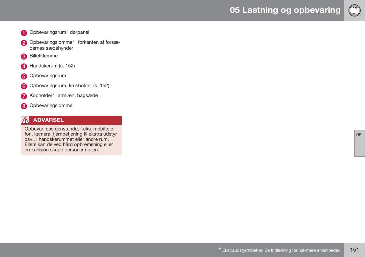 * Ekstraudstyr/tilbehør. Se Indledning for nærmere enkeltheder.151