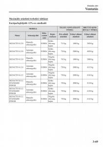 utánfutó vontatási tömegre vonatkozó táblázat bruttó kombinált tömegéhez képest. A