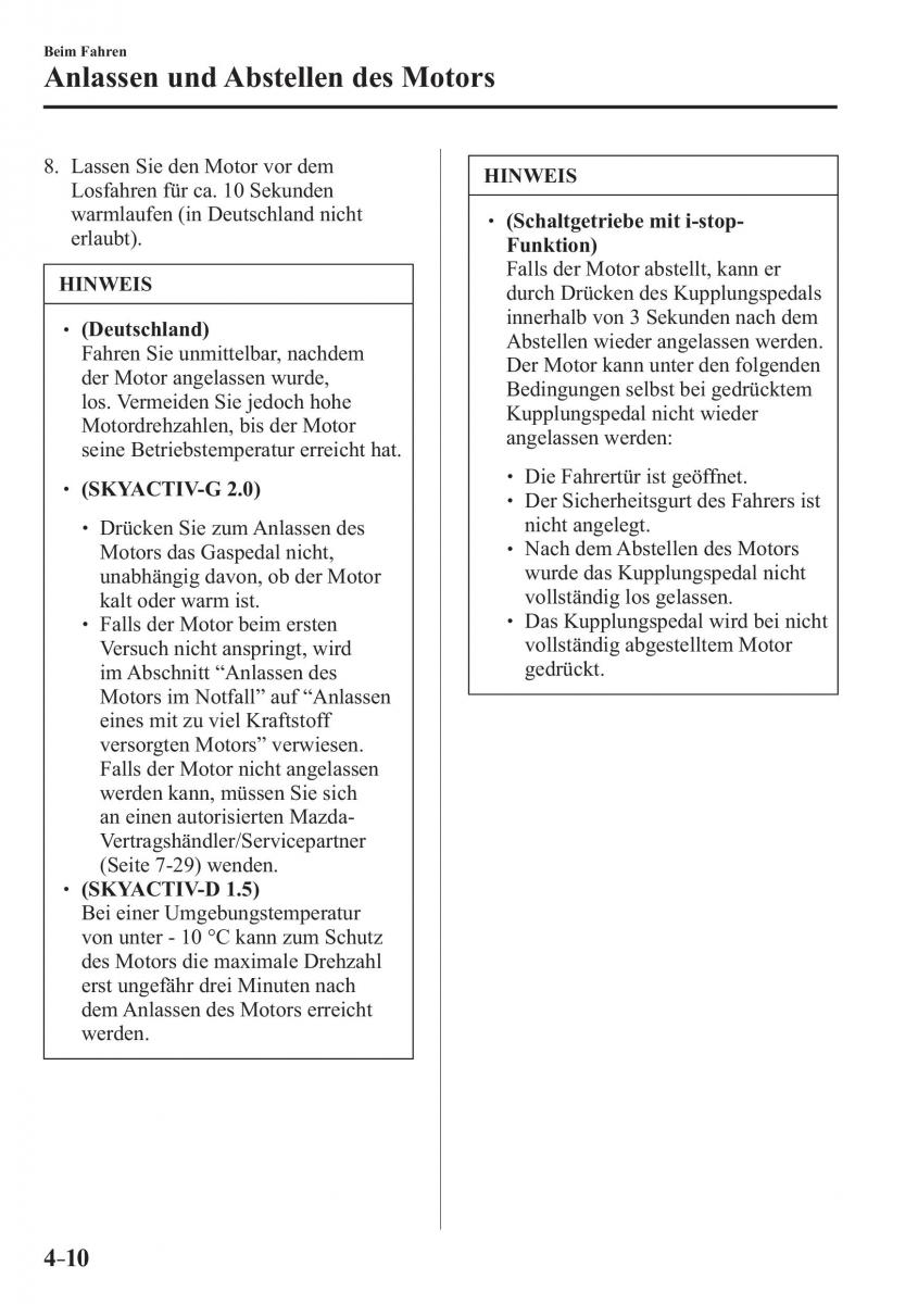 warmlaufen (in Deutschland nicht (Schaltgetriebe mit i-stop-