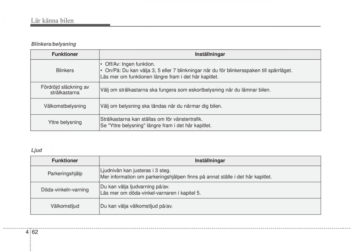 Blinkers • On/På: Du kan välja 3, 5 eller 7 blinkningar när du för blinkersspaken till spärrläget.