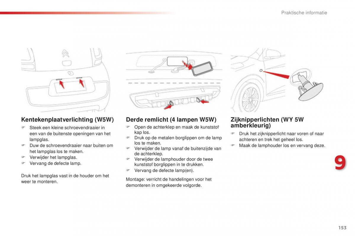 Kentekenplaatverlichting (W5W)Derde remlicht (4 lampen W5W)Zijknipperlichten (WY 5W
