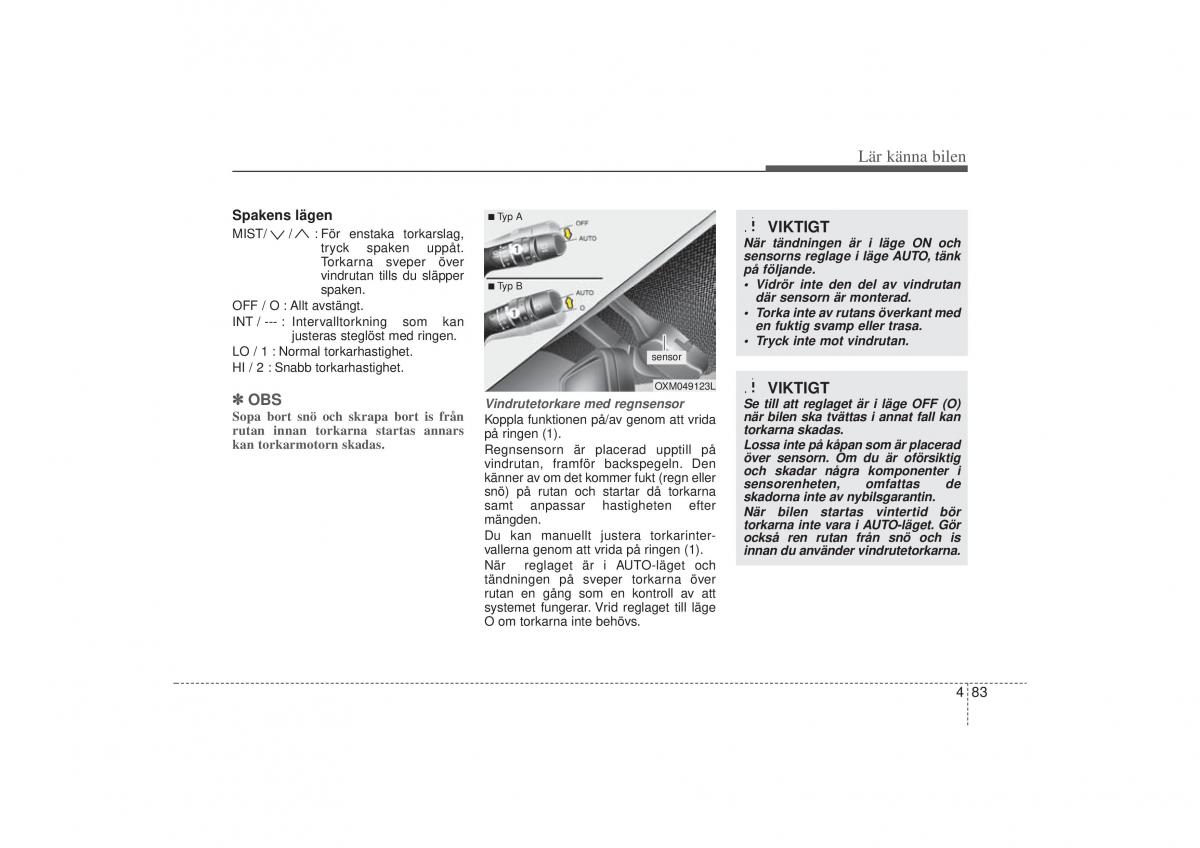✽✽ OBS Vindrutetorkare med regnsensor Se till att reglaget är i lägOFF (O)e