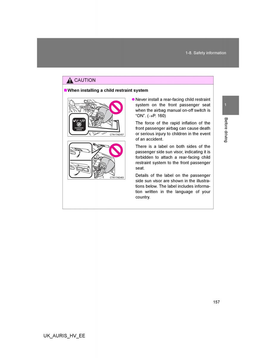 from owners manual to the vehicle Toyota Auris Hybrid, year of production 2007 - 2012: