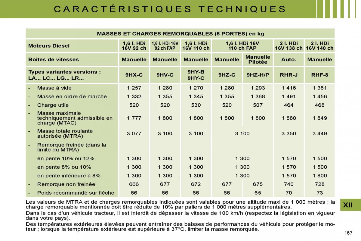 teur ; lorsque la température extérieure est supérieure à 37°C, limiter la masse remorquée. 167