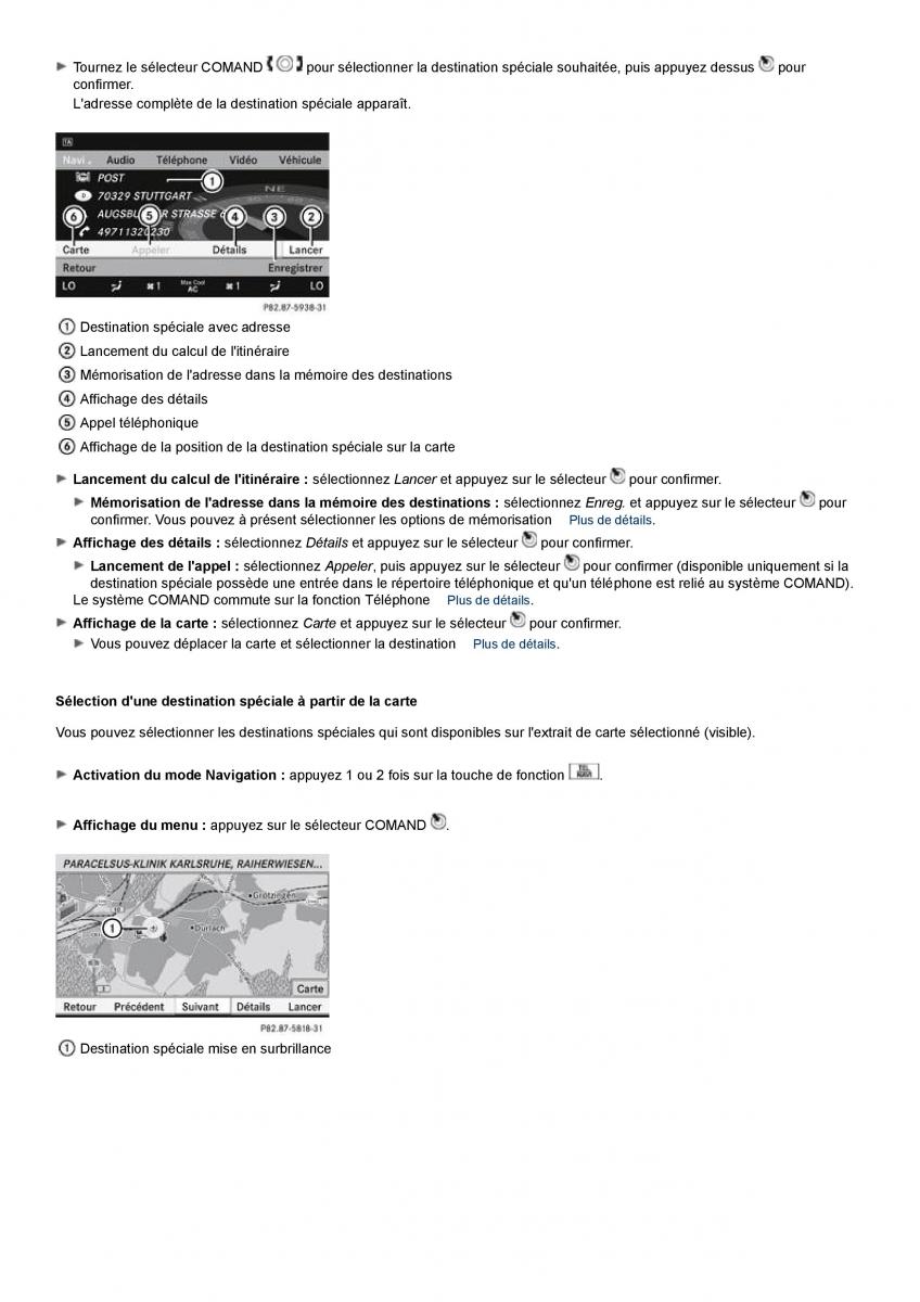 destination spéciale possède une entrée dans le répertoire téléphonique et qu'un téléphone est relié au système COMAND).