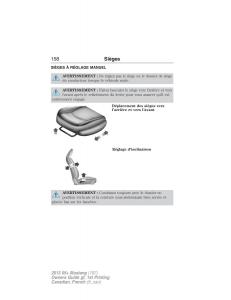 AVERTISSEMENT:Neréglez jamais le siège ou le dossier du