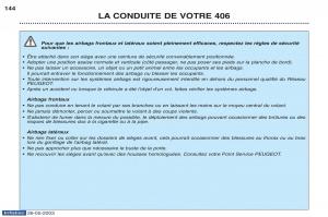 owners manual Peugeot 406 - year of production: 1995, 1996, 1997, 1998, 1999, 2000, 2001, 2002, 2003, 2004 - Peugeot 406 manuel du proprietaire FR