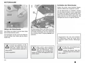 Öffnen der Motorhaube Die Motorhaube öffnen, die Stütze 2 aus der
